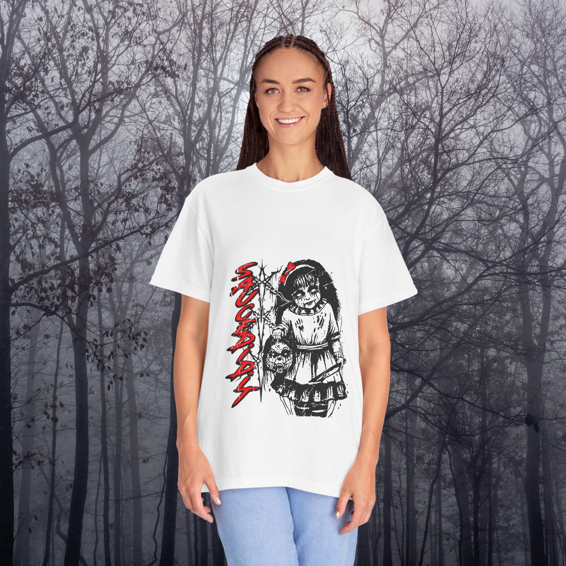 Creepy Doll Graphic Tee, Unisex Horror T-shirt, Spooky Gift, Halloween Apparel, Vintage Style Shirt, Gothic Fashion