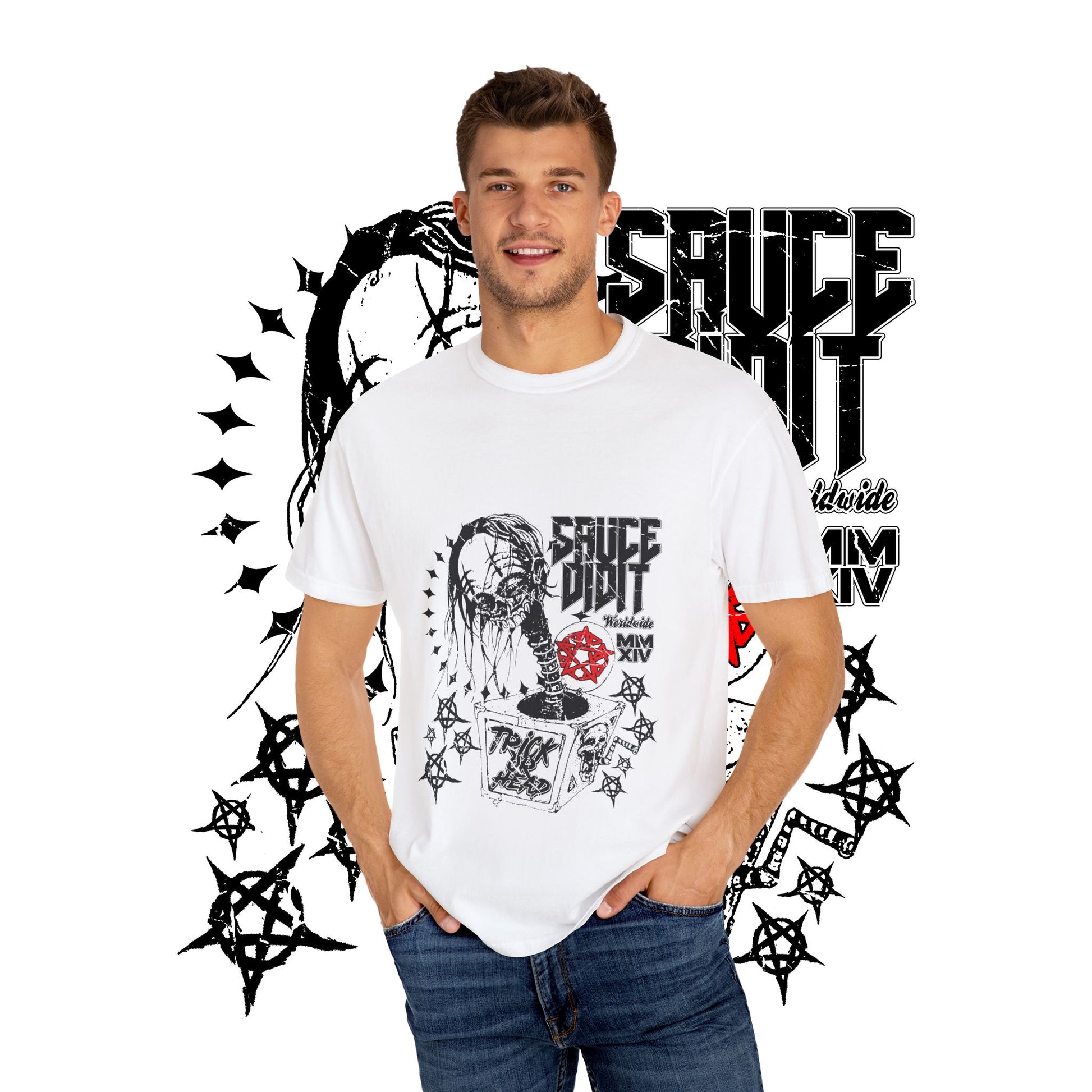 Halloween Unisex Garment-Dyed T-shirt - Trick or Head Ghost Costume, Funny Spooky Tee, Halloween Party Shirt, Trick or Treat Top, Halloween