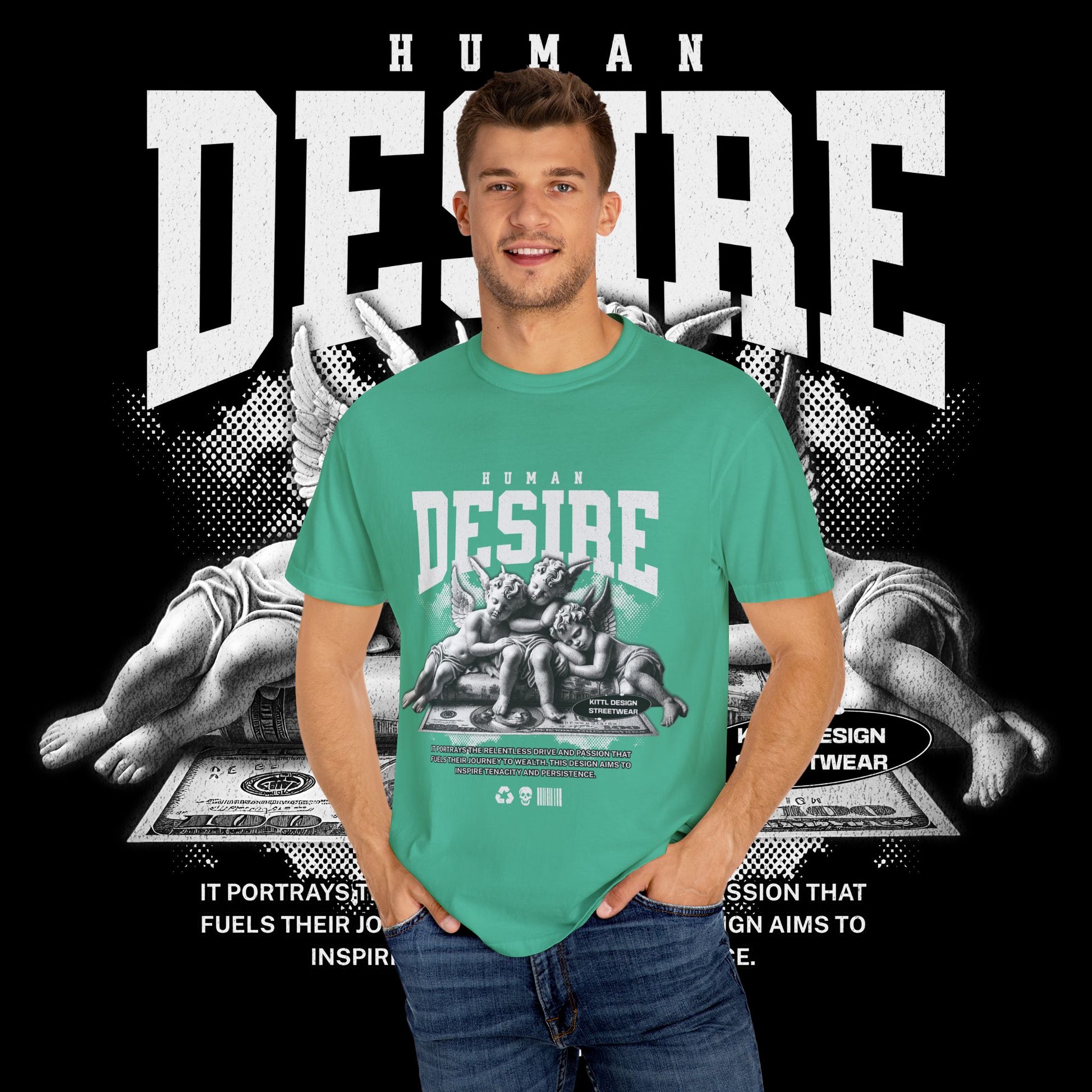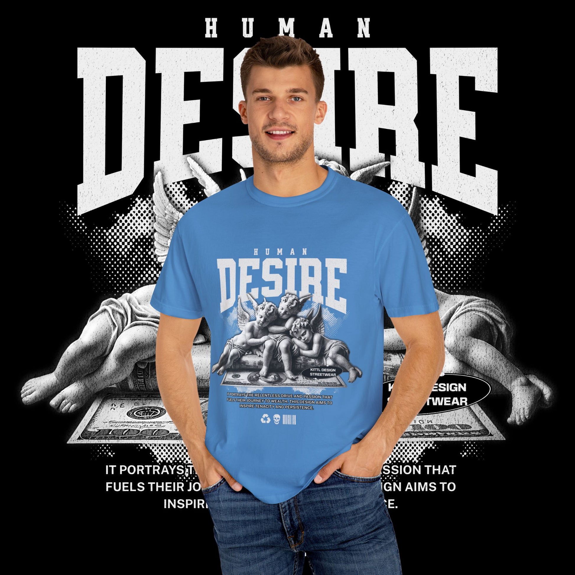 Human Desire Unisex Garment-Dyed T-shirt, Vintage Tee, Graphic Top, Trendy Shirt, Minimalist Clothing, Hipster Apparel