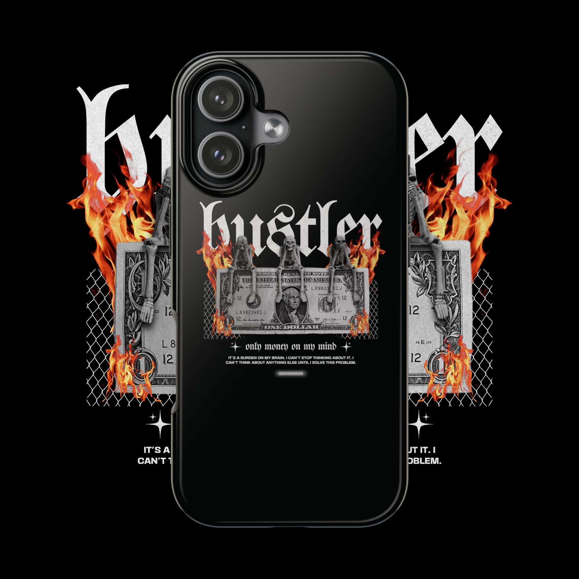 Hustler Flame Tough Phone Case — Rugged Black Protective Cover with Burning Money Graphic